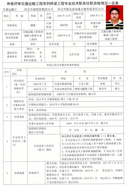 京張公司2017年度專(zhuān)業(yè)技術(shù)職稱(chēng)申報(bào)公示(李強(qiáng))